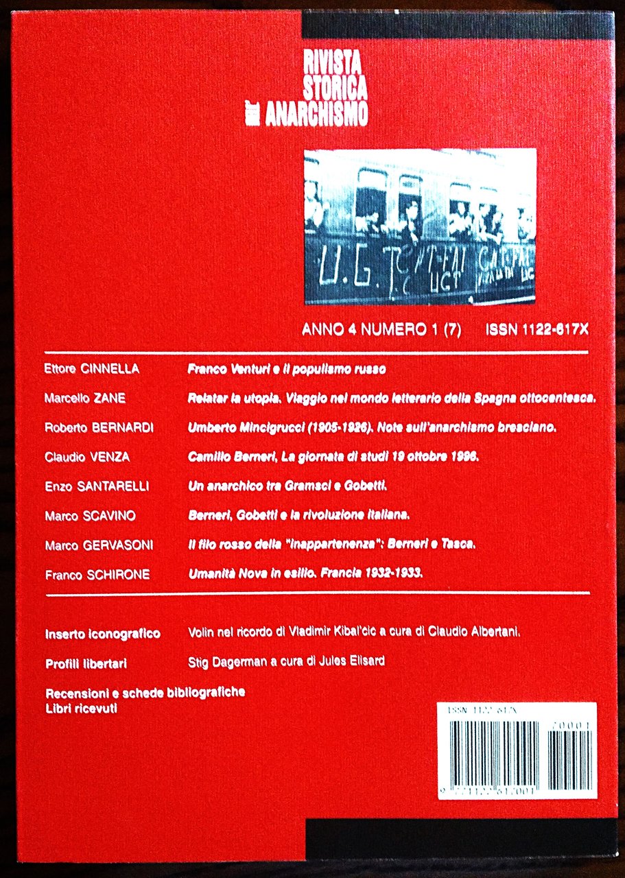 Rivista storica dell'anarchismo. Anno 4 numero 1 Gennaio-Giugno 1997.