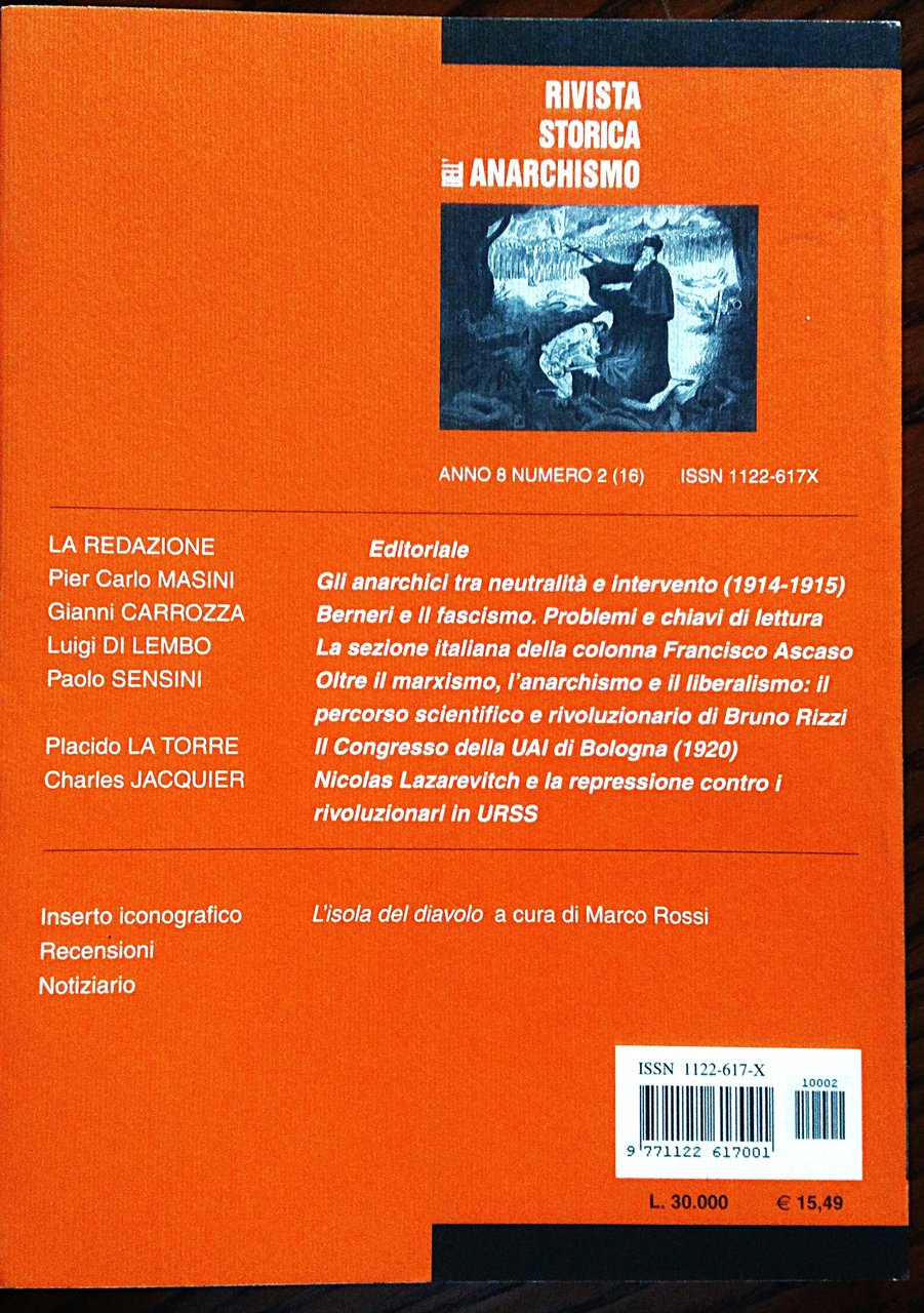 Rivista storica dell'anarchismo. Anno 8 numero 2 Luglio dicembre 2001.