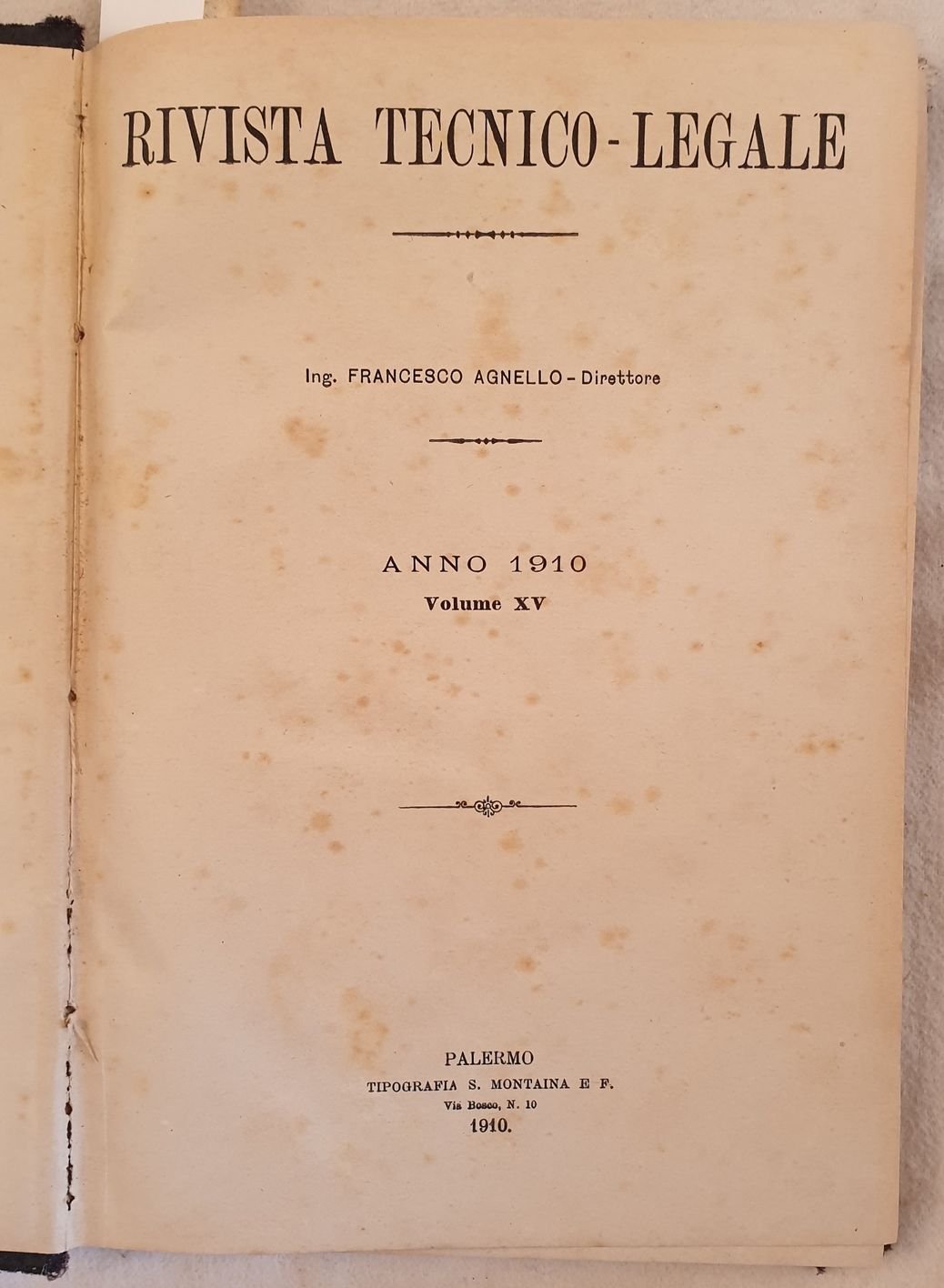 RIVISTA TECNICO LEGALE ANNO 1910 VOLUME XV