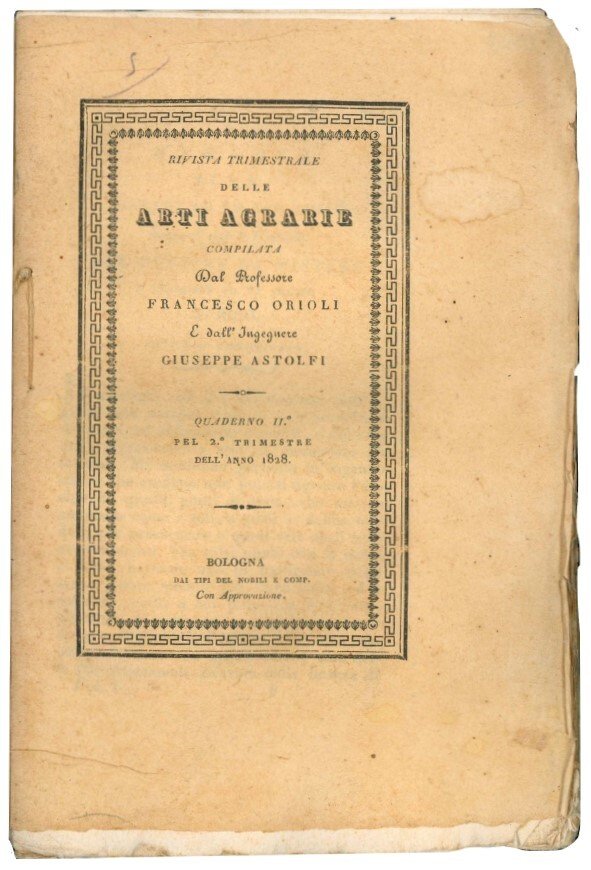 Rivista trimestrale delle arti agrarie. Quaderno II e III pel 2^ e 3^ trimestre dell'anno 1828.