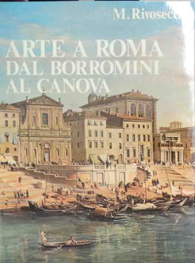 Mario Rivosechi, Arte a Roma. Dal Borromini al Canova, Banco di Santo Spirito, Roma 1978, pp. 244, ill. b.n., 16 c. di tavv. ill. col., cm 32, legatura in similpelle ed. con titoli al dorso e al piatto., sovraccoperta e cofanetto in cart. ed. Edizione fuori commercio realizzata da Editalia – Edizioni d’Italia per conto del Banco di Santo Spirito. Indice: La genialità del Borromini – Gian Lorenzo Bernini e la sua originalità scultorea – Il necessario eclettismo di Carlo Fontana e Alessandro Specchi – Del costruire in Roma nel Sei e Settecento – L’architettura minore nel Settecento – Vanvitelli – Lo scultore Antonio Canova - Indice dei nomi – Indice delle illustrazioni in bianco e nero – Indice delle tavole a colori. Minime tracce d’uso al cofanetto, uno strappetto senza mancanze alla sovraccoperta, per il resto perfetto.