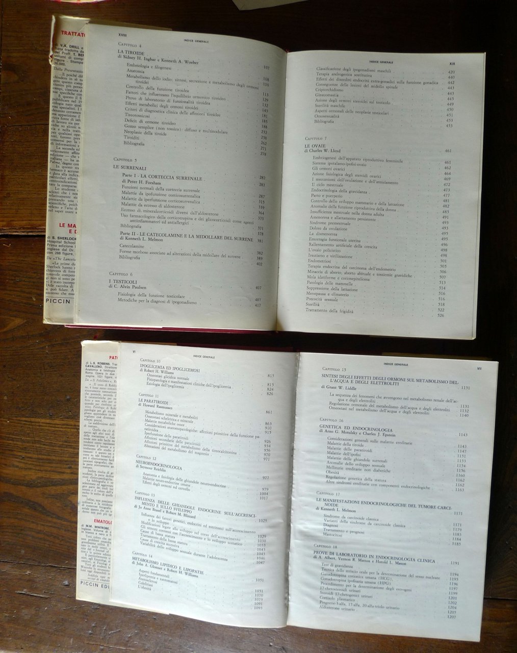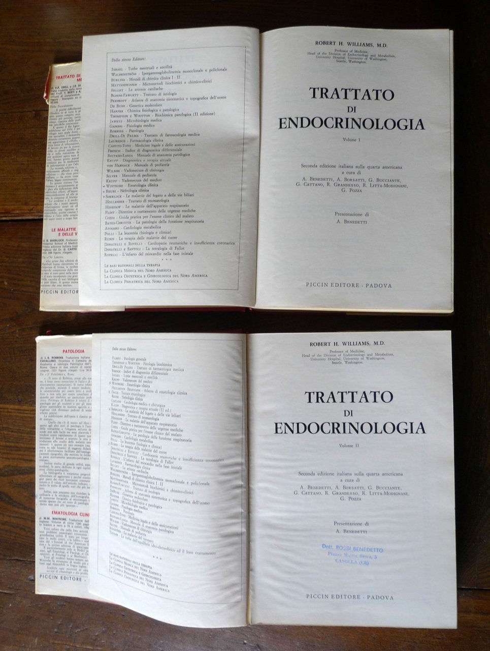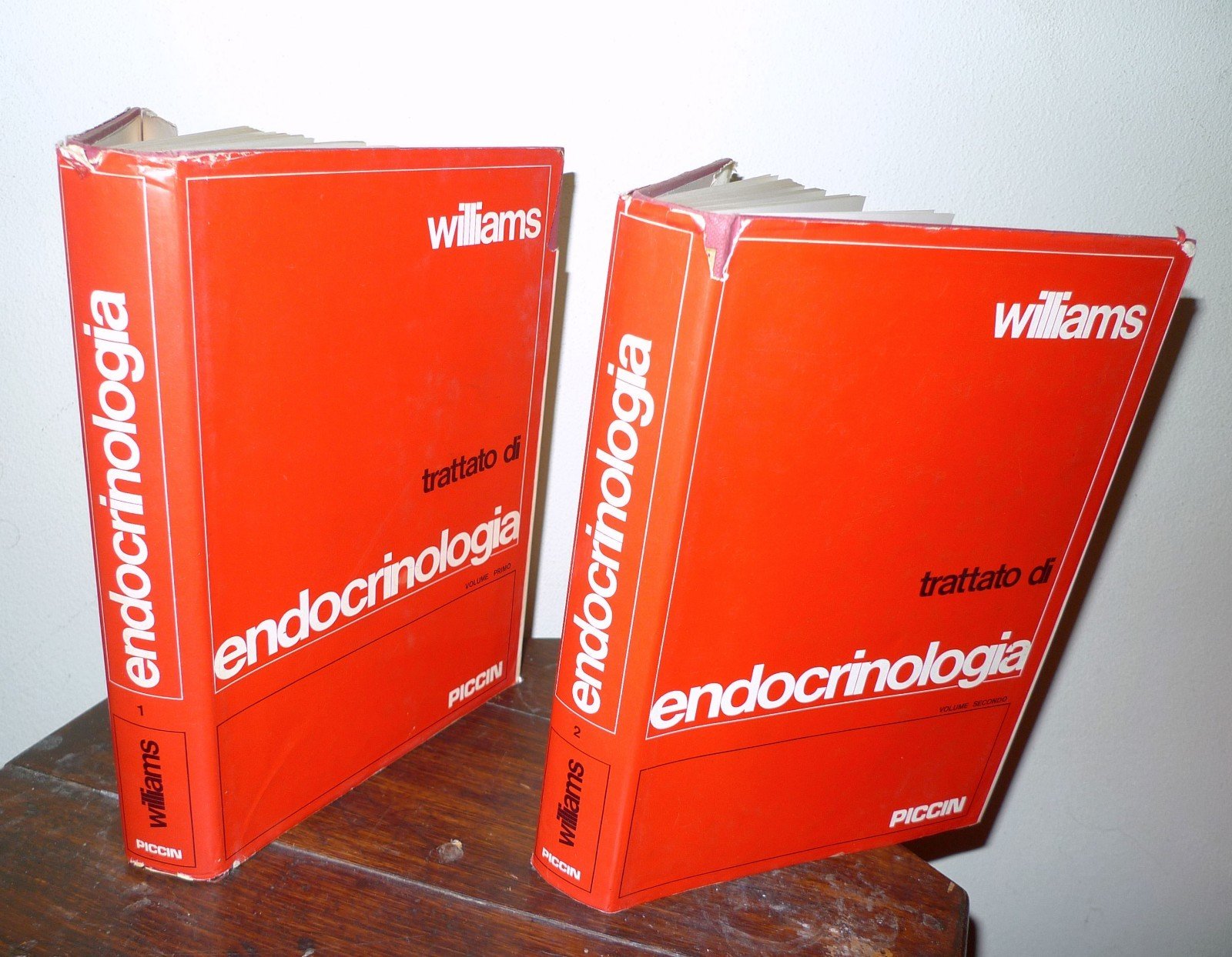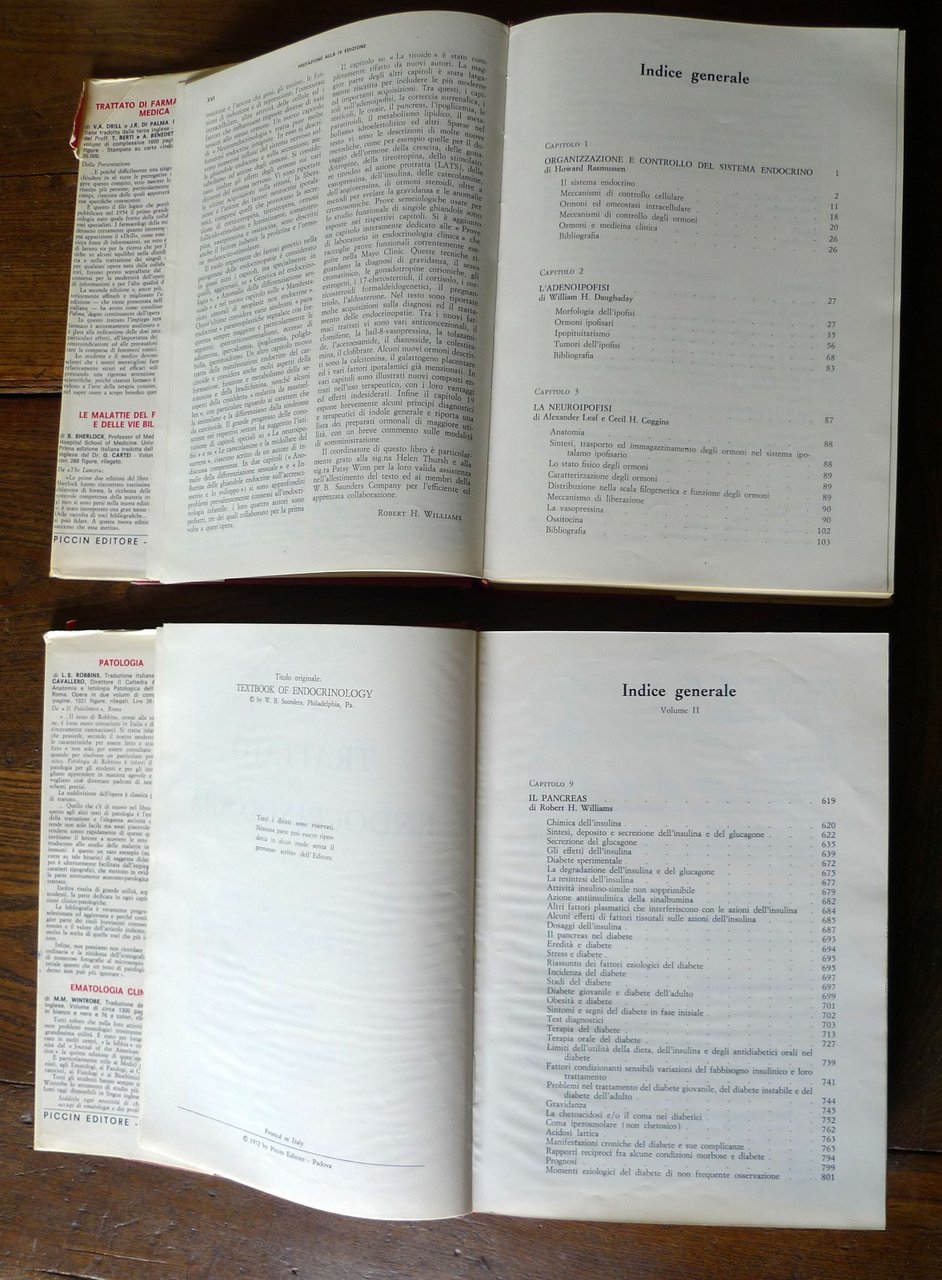 Robert H. Williams,TRATTATO DI ENDOCRINOLOGIA.VOLUME I - VOLUME II[2 VOLUMI, OPERA COMPLETA].Seconda edizione italiana sulla quarta americanaa cura di A. Benedetti, A Borsatti, G. Bucciante,G. Cattano, R. Grandesso, R. Litta-Modignani,G. Pozza.Presentazione di A. Benedetti.Piccin Editore, Padova 1972,copertina rigida, rilegatura in tela,sovraccoperta, 25x18 cm., pp.XX-VIII-1261,illustrazioni in bianco e nero,peso: kg.3,3cod.9550CONDIZIONI DEI LIBRI: buone,imperfezioni e strappetti con mancanzealle sovraccoperte,firme e timbri di appertenenza alle prime pagine,sottolineature a matita,VOL.II: macchie di inchiostro al taglio e ai marginidelle pagine (il testo non è coinvolto)