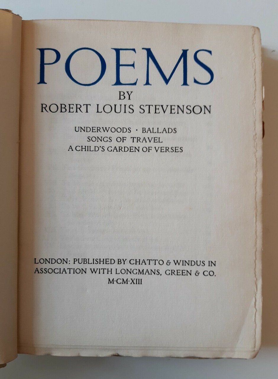 ROBERT LOUIS STEVENSON POEMS ED. CHATTO & WIDUS 1913