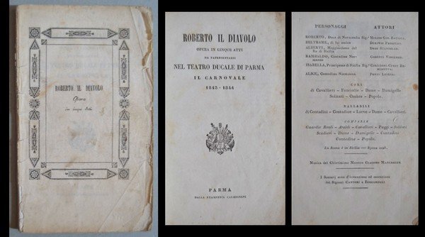 *ROBERTO IL DIAVOLO Opera in cinque atti da rapresentarsi nel Teatro Ducale di Parma "Il Carnovale" 1843-1844