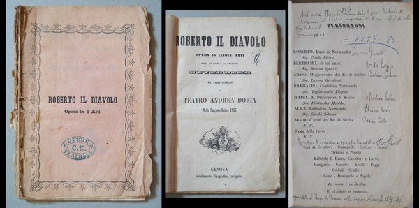 *ROBERTO IL DIAVOLO Opera in cinque atti. Posta in musica dal maestro Meyerbeer da rappresentarsi al Teatro Andrea Doria nella Stagione Estiva 1857