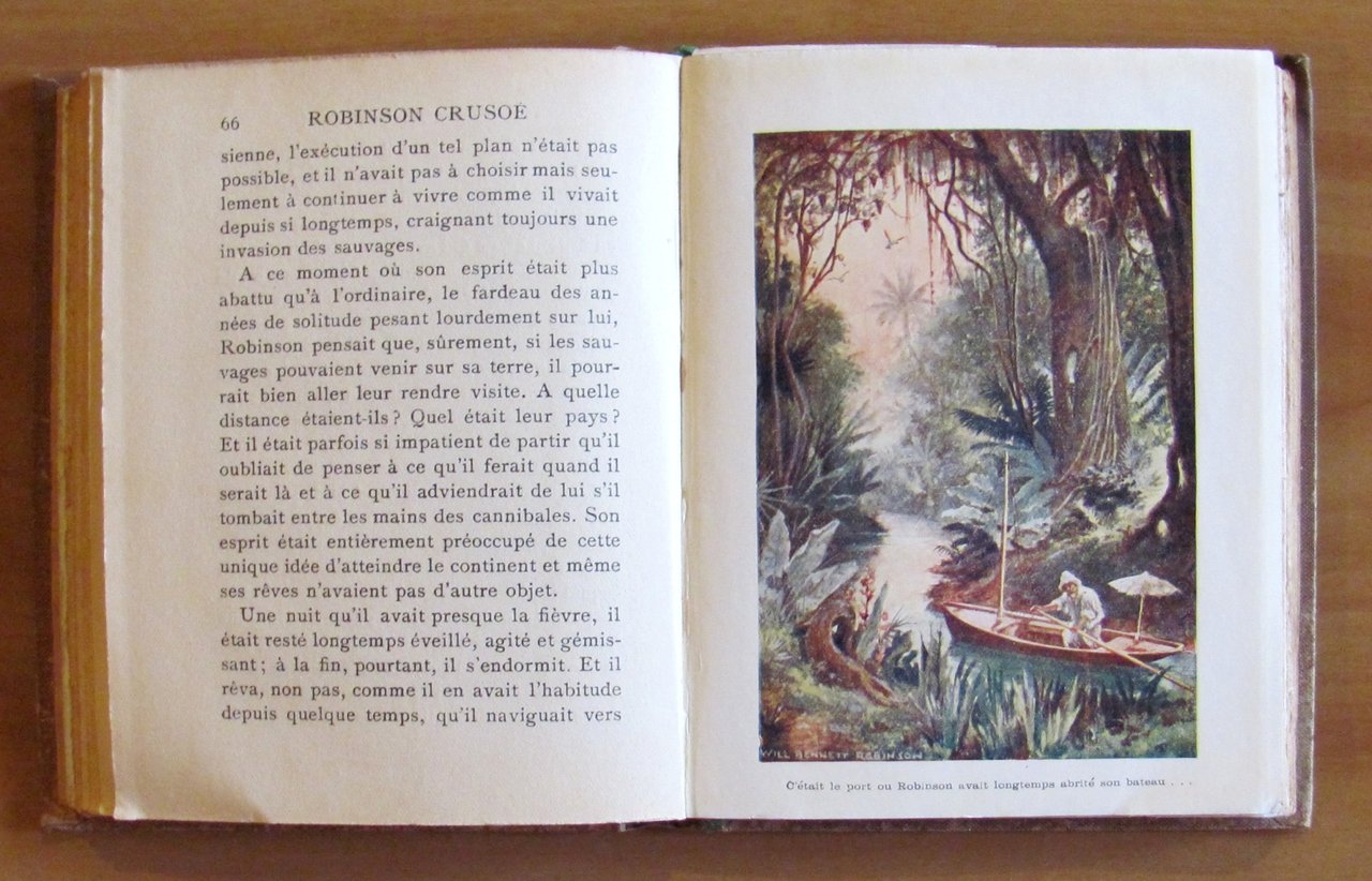 8 splendide tavole a colori f.t. di Will Bennett Robinson. Ed. Pierre Lafitte - Paris, s.d. 1930 ca. Tela editoriale con fregi e titoli in oro al piatto e al dorso e illustrazione a colori applicata in copertina. Abrasioni della tela in basso al dorso e alla retrocopertina. Firma di vecchia appartenenza in antiporta. Interno pulito e freschissimo. 12x15; pp.120. Raro e in Buonissimo stato. , Molto buono (Very Good)