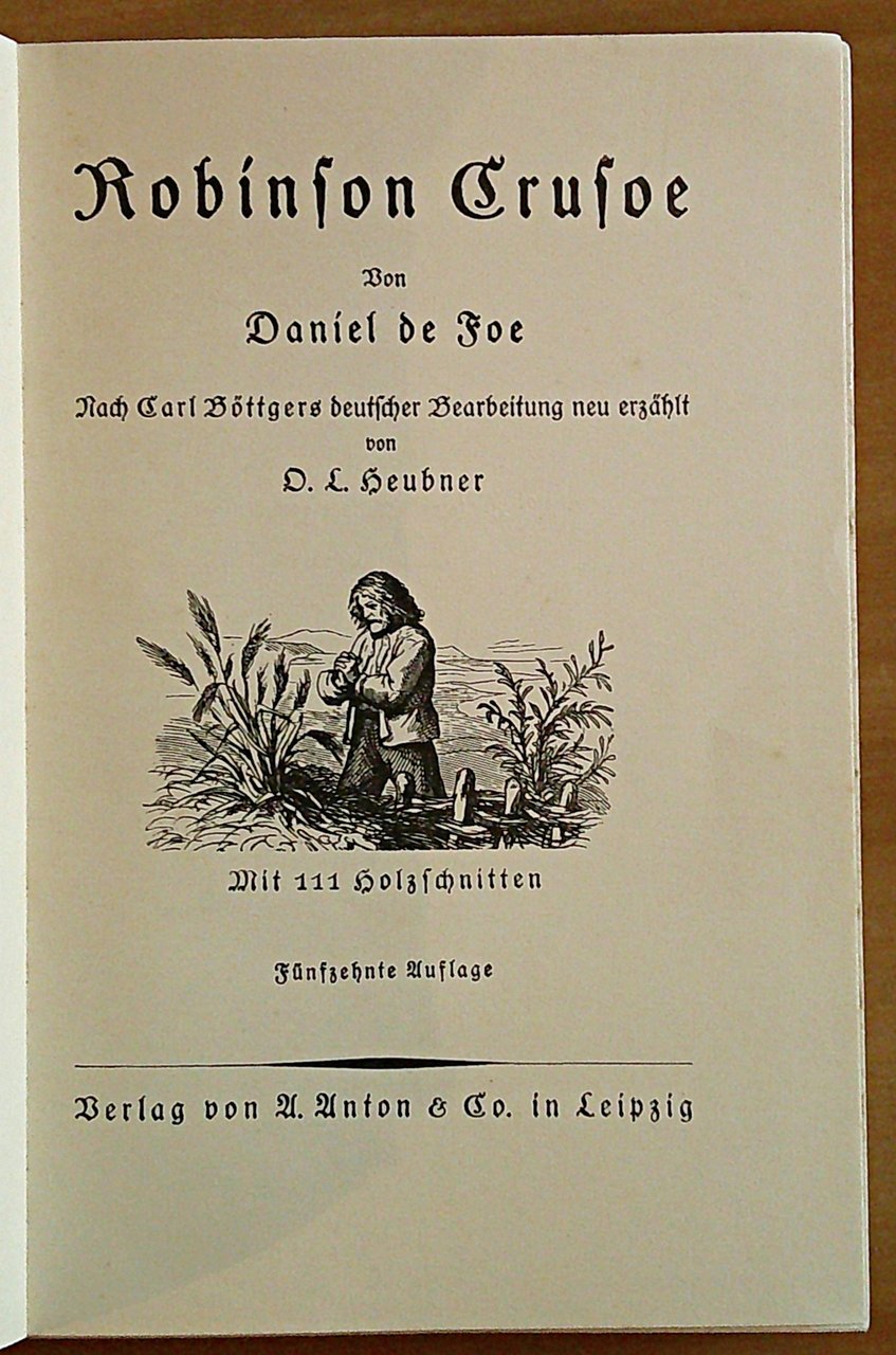 Rivisitato da D. L. Heubner dopo l'adattamento tedesco di Carl Bottger. 111 xilografie in b/n n.t. Ed. A. Anton & Co. - Leipzig, s.d. fine '800. Cartonato editoriale con dorso in tela e sovraccoperta originale. Piccole mancanze e segni del tempo alla sola sovraccoperta. Peraltro libro in Ottimo stato. 13x18; pp.189. Buonissimo stato. , Molto buono (Very Good)