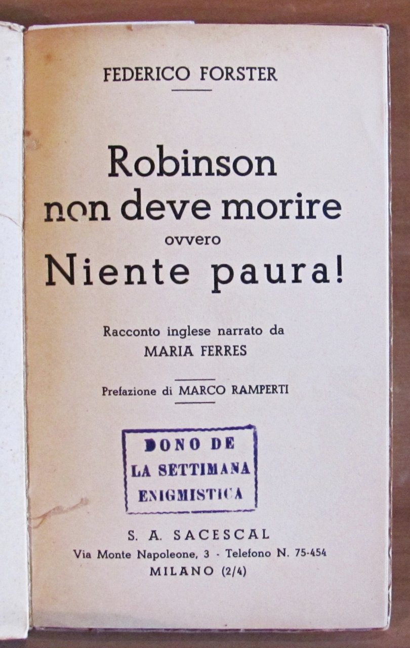 ROBINSON NON DEVE MORIRE ovvero Niente paura!, 1934 -Dono de la Settimana Enigmistica