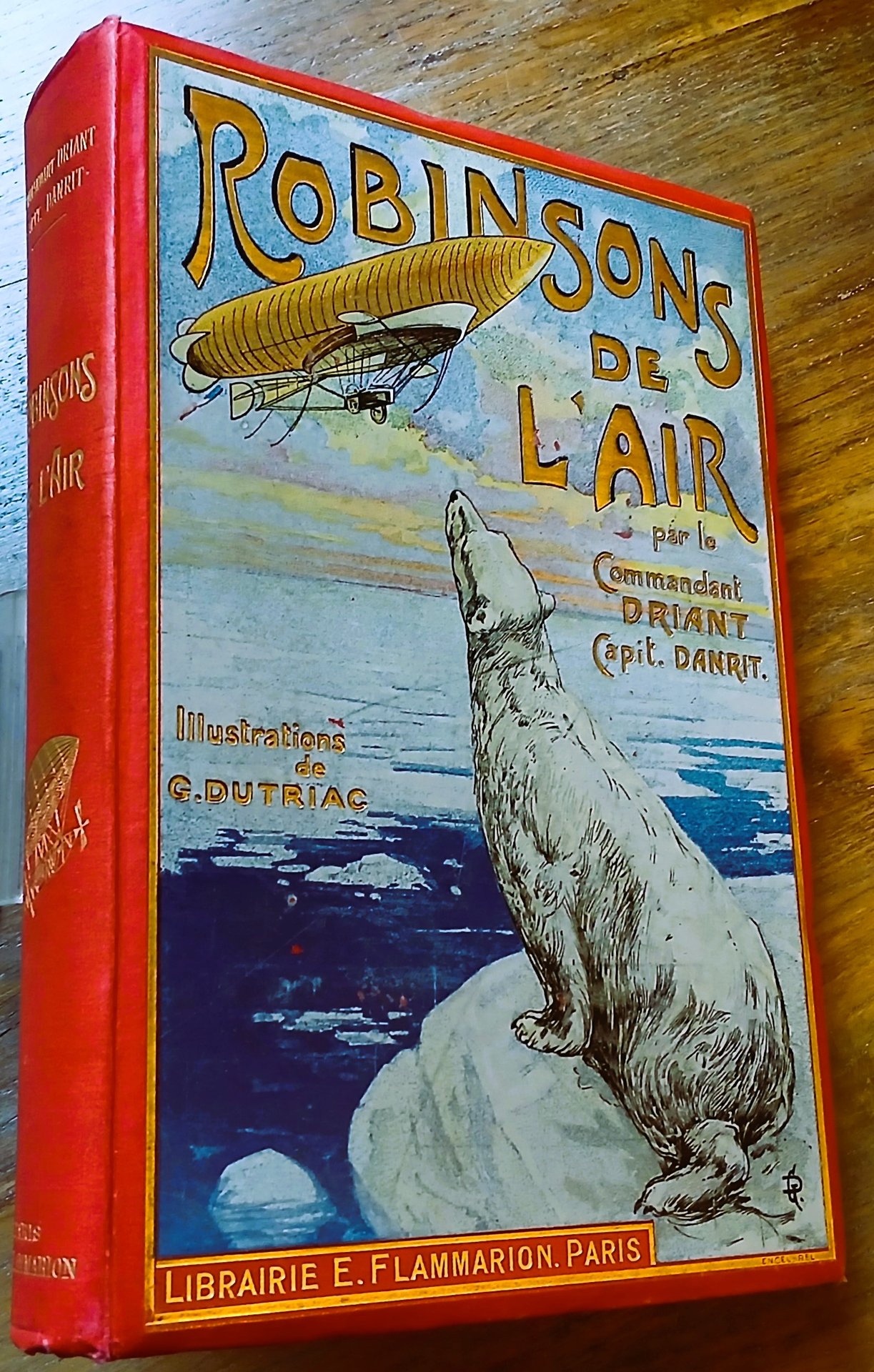 (Libro illustrato - Avventure - Viaggio in dirigibile - Polo Nord) In 8° grande, legatura editoriale in piena tela rossa, al dorso titoli e fregio impressi in oro, al piatto anteriore titoli dorati e figurazione artica a più colori, tagli dorati, pp. (6),503,(1), con una tavola in antiporta protetta da velina e numerose illustrazioni di Georges Dutriac a piena pagina ed intercalate nel testo. Volume solido e ben conservato.