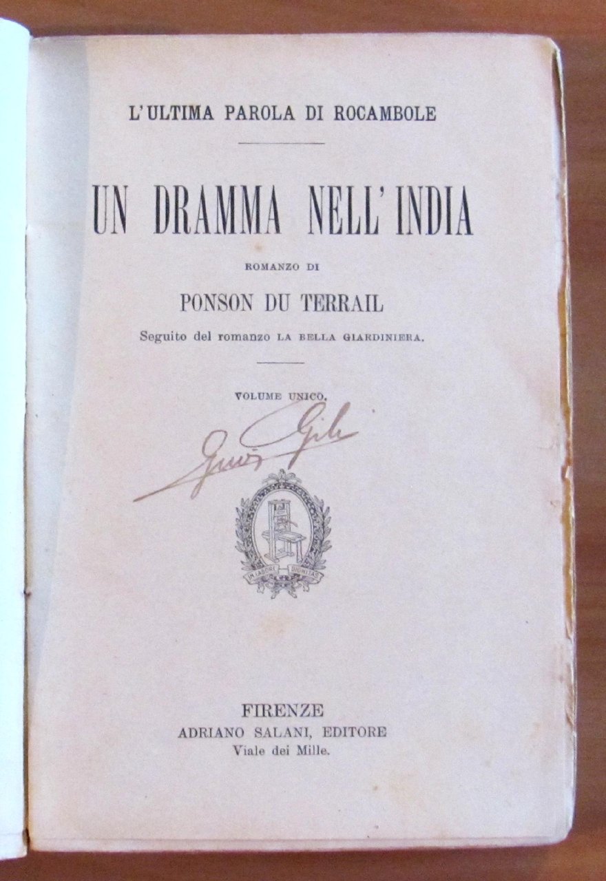 Volume Unico. Bella illustrazione a colori in copertina. Editore Salani - Firenze, 1926. Brossura editoriale con minime tracce del tempo. Peraltro Ottimo. 13x19; pp.266. Raro, Ottimo stato. , Molto buono (Very Good)