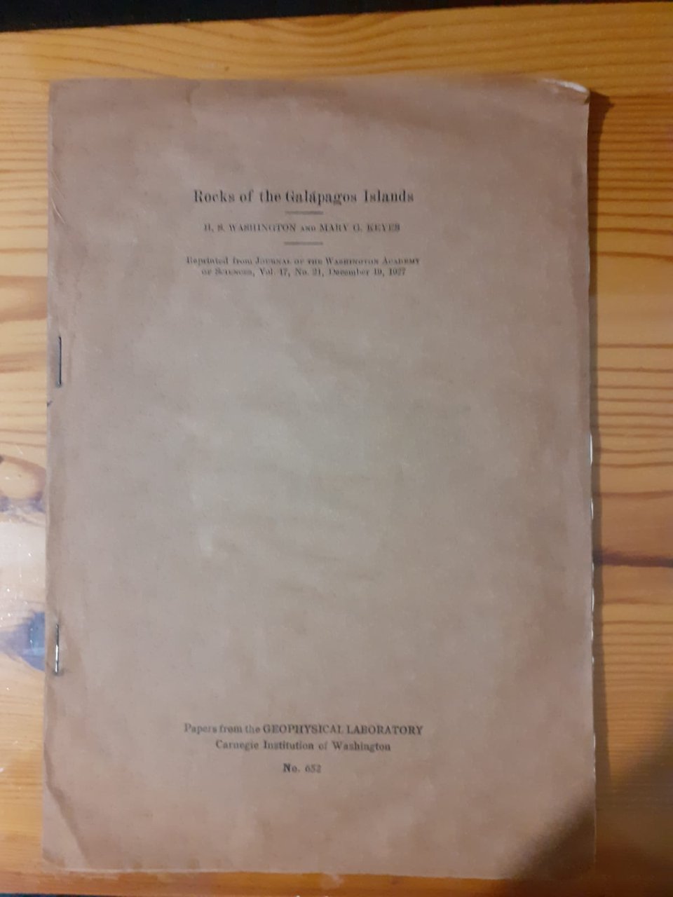 REPRINTED FROM JOURNAL OF THE WASHINGTON ACCADEMY OF SCIENCES VOL 17 NO 21 DECEMBER 19