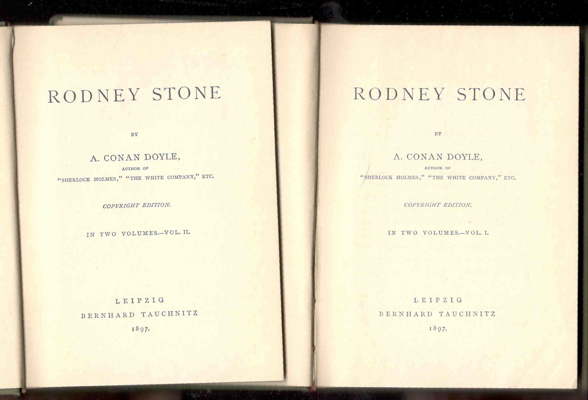 Due volumi in 16°, pp. 272; 286. Tela verde oliva dell'epoca con titoli oro sul dorso. Copia in ottimo stato. Collection of British and American Authors, Vol. 3182-3183. Copyright edition.