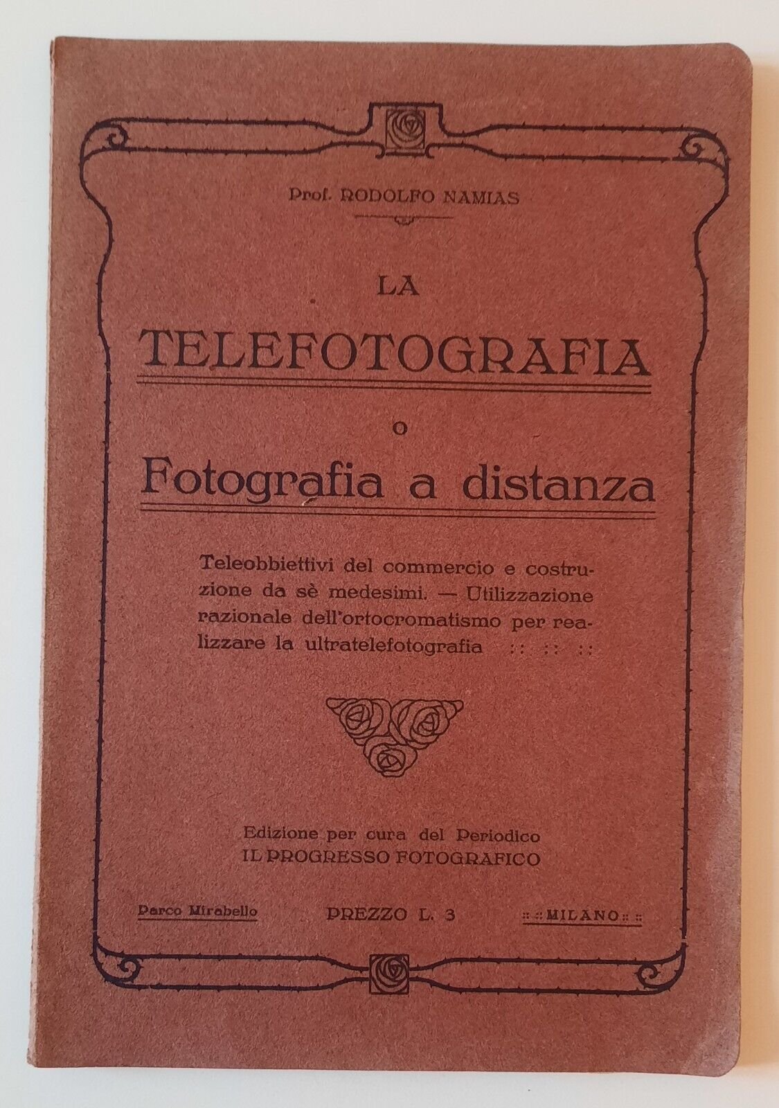 RODOLFO NAMIAS LA TELEFOTOGRAFIA O FOTOGRAFIA A DISTANZA IL PROGRESSO FOTOGRAFICO S.D.In 8°, pag. 66, legatura editoriale, copertina illustrata.In ottime condizioni.Ulteriori dettagli e immagini a richiesta.
