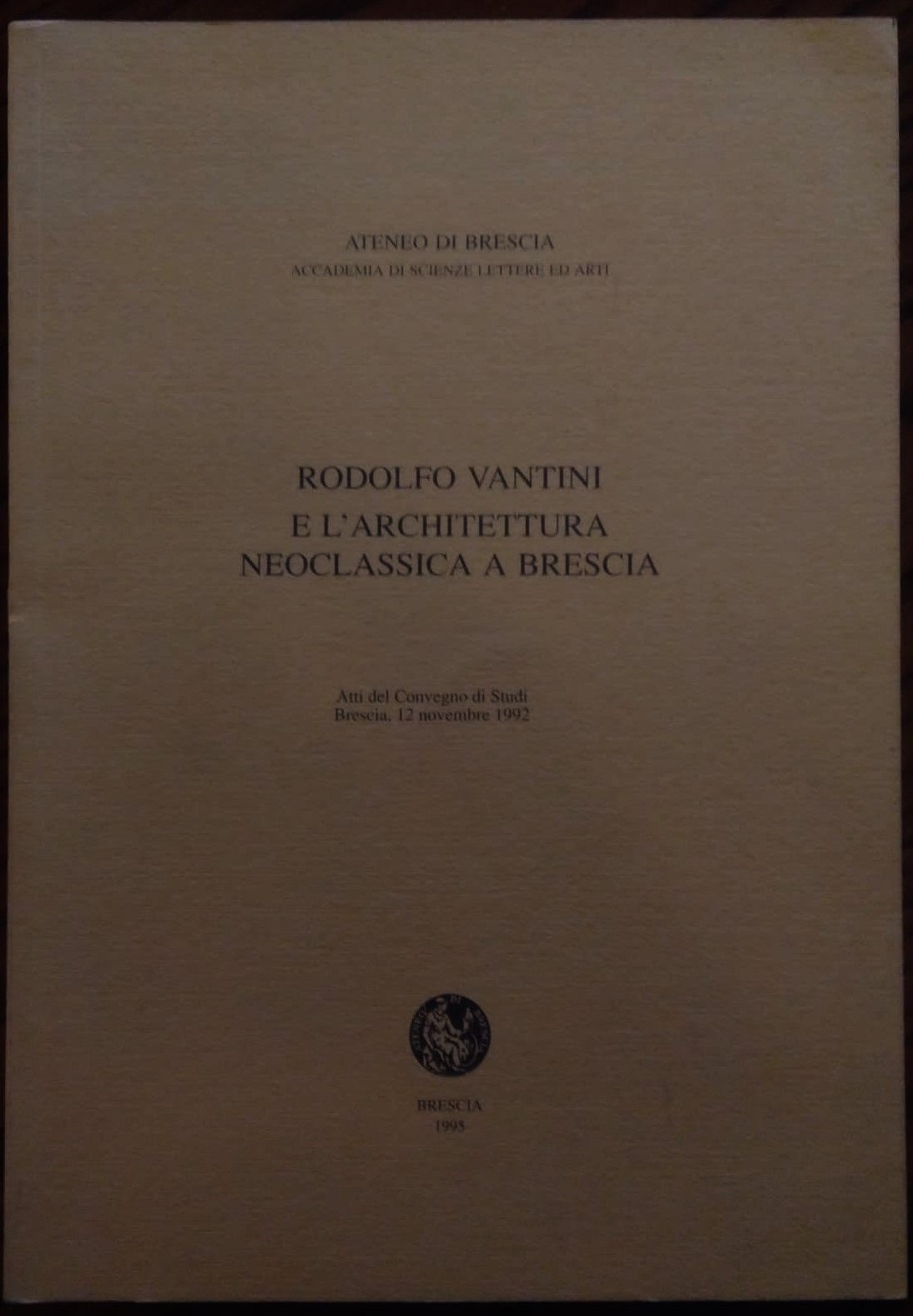 Rodolfo Vantini e l'architettura neoclassica a Brescia. Atti del Convegno di studi Brescia, 12 novembre 1992.