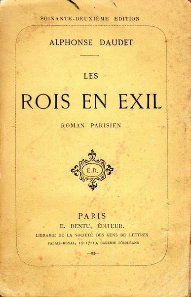 Rois en exil, edizione 1885, pp. 411, formato 12 x 19.<BR>Copertina morbida di colore giallo con titoli in nero al piatto anteriore e sul dorso.<BR>Mancanza nella parte anteriore del dorso. Fioriture ai piatti. Nel complesso buone condizioni.