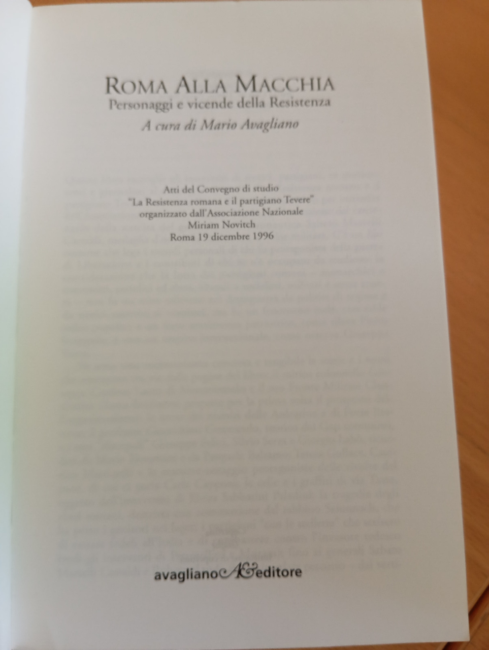 Roma alla macchia, personaggi e vicende della resistenza, Mario Avagliano, 1997