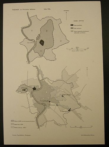 Roma antica. Tratto da " La penisola italiana : saggio di corografia scientifica" di Teobaldo Fischer.