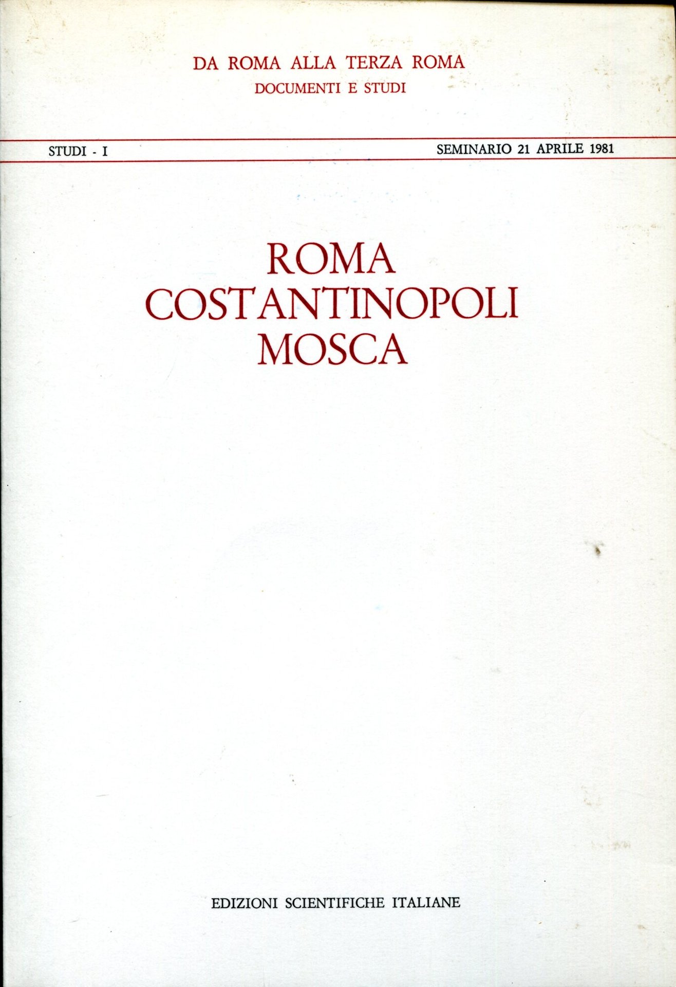 Roma, Costantinopoli, Mosca : seminario 21 aprile 1981. Seminario internazionale di studi storici da Roma alla terza Roma