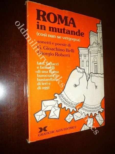 TITOLO: ROMA IN MUTANDE (COSI NUN SE VERGOGNA) FATTI FATTACCI E FATTERELLI DI UNA ROMA BUROCRATICA E BUSTARELLARA DI IERI E DI OGGI DESCRIZIONE: Grafiche Alfa Ed. Roma s.d. ma 1990, br. ed. ill. col. con alette, pp. 167 in 8°. CONDIZIONI: Discrete/Buone, segni di sporco ed alcune tracce di ingiallimento. PESO / WEIGHT: 300 gr. without package