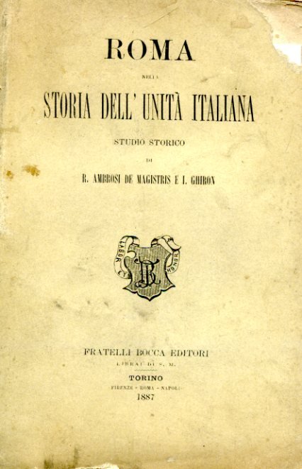 In-8°, pp. (8), 486, (4), brossura editoriale (con piccoli restauri). In barbe. Prima edizione. La presente storia prende le mosse dall'età antica e giunge sino alla breccia di Porta Pia. Appendice di documenti inediti in fine.