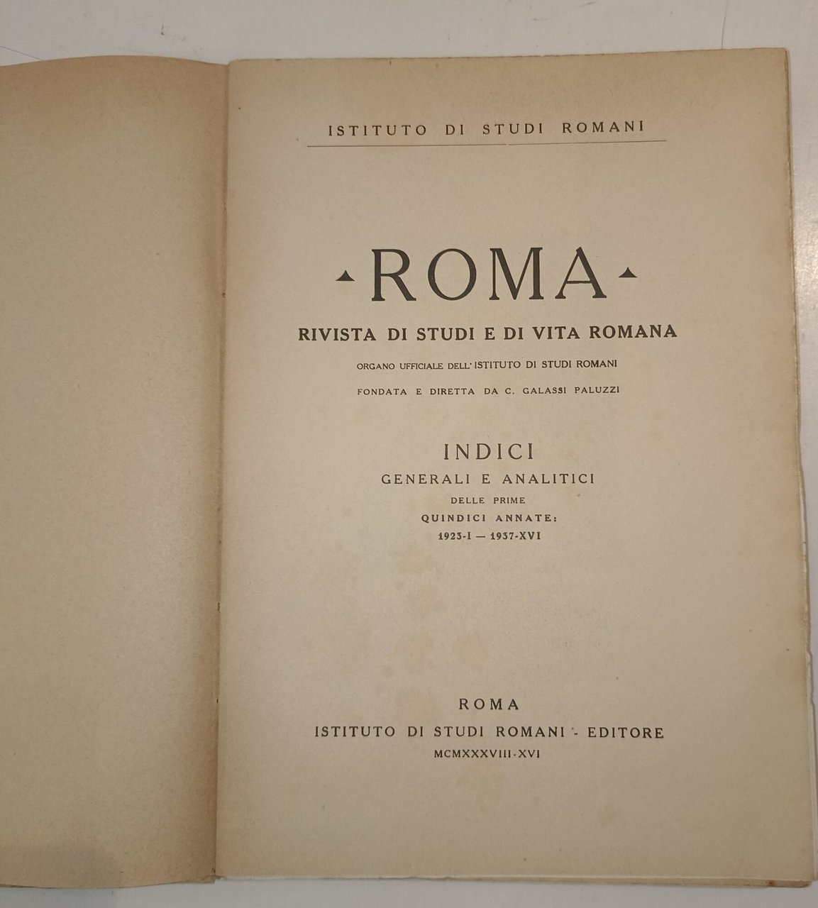 Roma Rivista di studi e di vita romana - Indici generali e analitici delle prime quindici annate 1923 - 1937