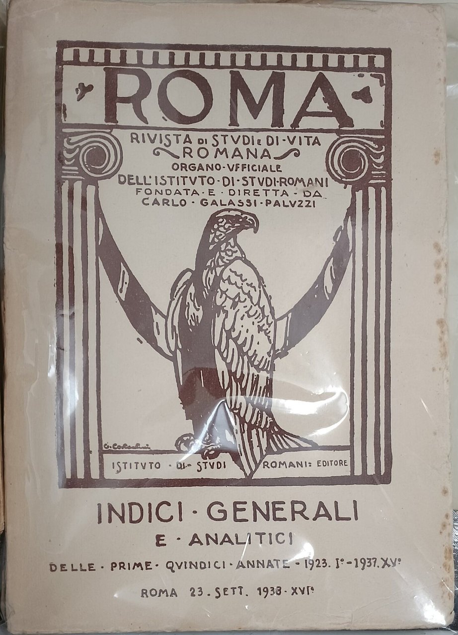 Indici generali e analitici delle prime quindici annate 1923-I°-1937- XV°- Roma, 23 sett. 1938- Istituto di studi romani editore- mancanze al dorso, piatto ant. staccato, interno in buono stato.