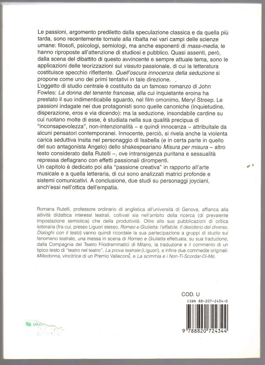 Romana Rutelli - Quell'Oscura Innocenza Della Seduzione, Libro LIGUORI 1995