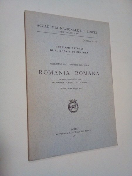 Romania romana. Colloquio italo-romeno sul tema. Organizzato d'intesa con la Accademia Romena delle Scienze (Roma, 10-11 maggio 1973).