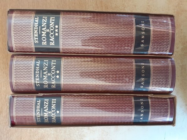 Legatura in similpelle rossa con fregi e titoli in oro al dorso e con sovracoperta in acetato. Con custodia di cartoncino tranne per il vol. 2.