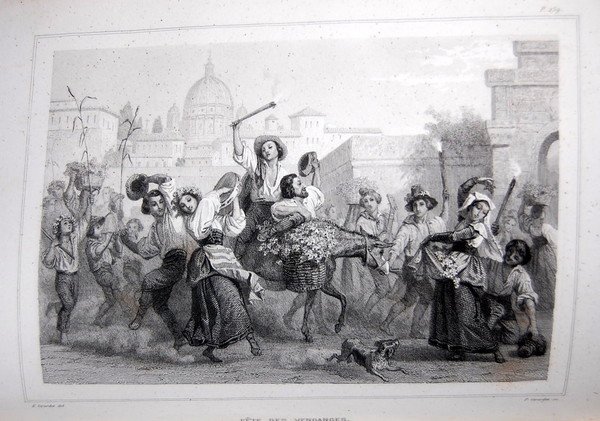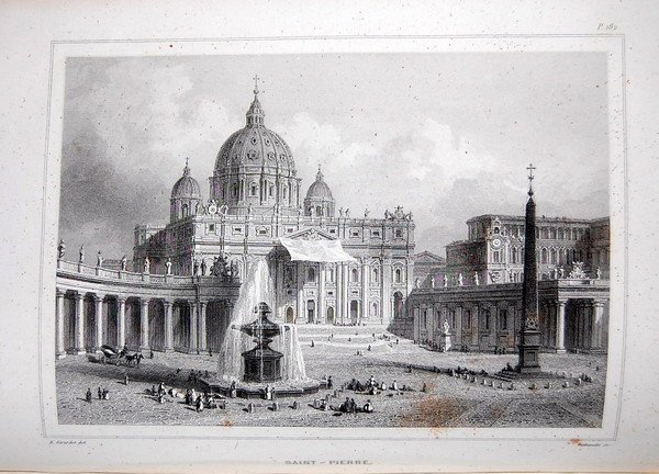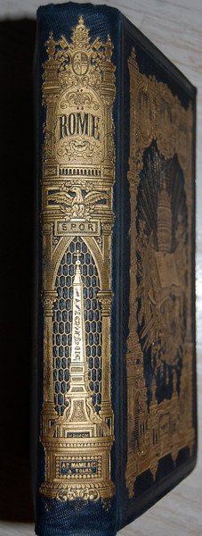 In 8° (24x15 cm); (4), 516 pp. e 8 c. di tav. compresa lantiporta incisa. Bellissima legatura editoriale in piena tela blu scuro con ricchissimi fregi in oro ed ai piatti. Prima edizione, una seconda uscì nel 1854, di questa celebre descrizione della Roma di metà ottocento. Lopera contiene 8 belle e fini vedute di Roma e del Vaticano ognuna protetta da una velina. L'opera contiene anche una descrizione della festa della vendemmia. Tagli in oro. Prima edizione in buone condizioni di conservazione e completo della sua legatura originale.