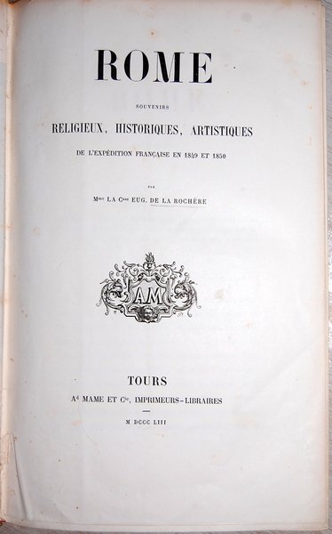 ROME. SOUVENIRS RELIGIEUX, HISTORIQUES, ARTISTIQUES DE L'EXPEDITION FRANCAISES EN 1849 ET 1850