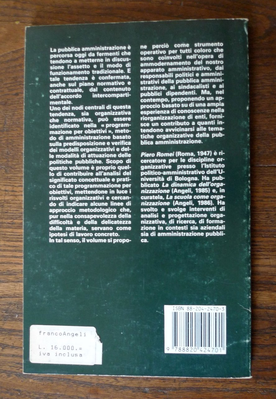 Piero Romei,RISULTATI E PRODUTTIVITÀ NEGLI ENTI PUBBLICI.Franco Angeli, Milano 1988,ristampa,brossura, 22x14 cm., pp.123,collana IRSI - ISTITUTO DI RICERCHE SUI PROBLEMI DELLO STATO E DELLE ISTITUZIONI,ISBN: 9788820424701,peso:g.300cod.9876CONDIZIONI DEL LIBRO: molto buone,pagine ingiallite