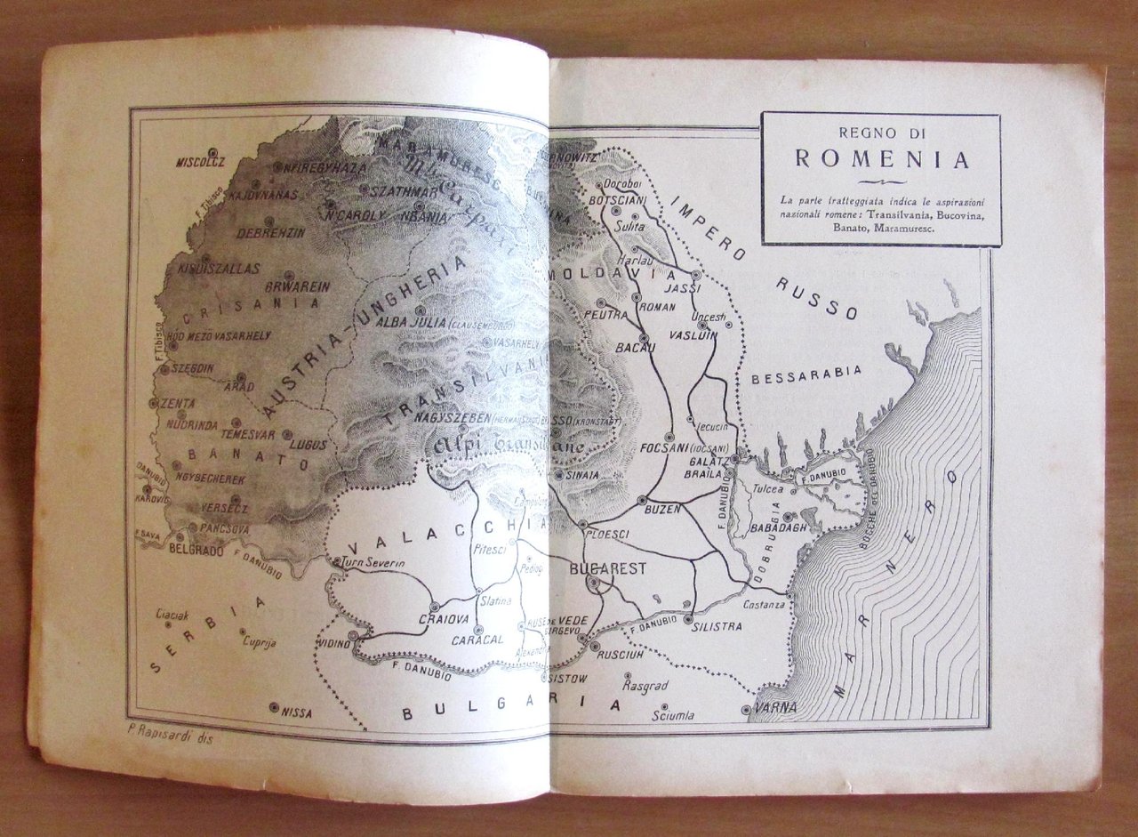 La Dacia Romana - I due Principati - L'indipendenza - L'influenza francese in Romenia - Carlo I, Re di Romenia - I tesori della terra - Romenia intellettuale - La Romenia irridenta - L'avvenire della Romenia. Bella copertina a colori di Filiberto Scarpelli. Editori R. Bemporad & F. - Firenze, I edizione 1915. Brossura editoriale. 19x24,5; pp.141. Ottimo stato. , Ottimo (Fine)