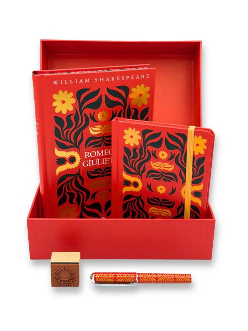 Dettagli Libro<br><br>Sku: PZZLB123649<br>ISBN: 9791223283233<br>Titolo: Romeo E Giulietta. Con Penna. Con Timbro Ex Libris. Con Taccuino<br>Autore: William Shakespeare<br>Editore: Giunti Editore<br>Anno: 2026<br><br>Questo cofanetto contiene Romeo e Giulietta e i Sonetti d'amore in una veste elegante e raffinata, insieme a un taccuino, a una penna e a un timbro per rendere unico ogni libro della tua biblioteca. Cosa c'è di più bello che tenere tra le mani il tuo romanzo preferito, insieme a oggetti preziosi in grado di portarti direttamente tra i versi più romantici e ispirati del Bardo? Un dono di inestimabile valore per ogni amante di William Shakespeare. Un cofanetto dal design deliziosamente ricercato che si trasforma in uno scrigno prezioso, dove conservare tutti i tuoi ricordi più belli. All'interno il libro, un taccuino, una penna e un timbro ex libris.