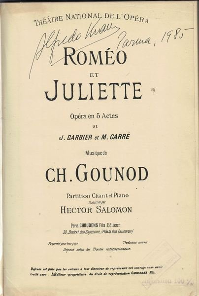Romèo et Juliette. Opera en 5 Actes de J. Barbier et M. Carrè