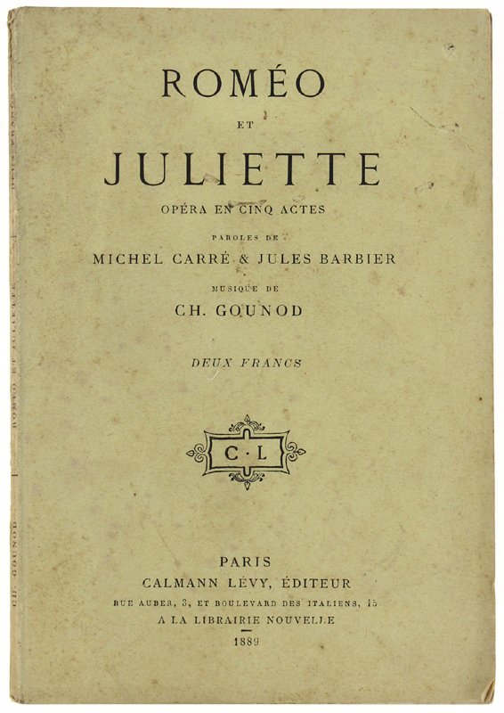 ROMEO ET JULIETTE. Opéra in cinq actes, paroles de Michel Carré & Jules Barbier, musique de Ch. Gounod.