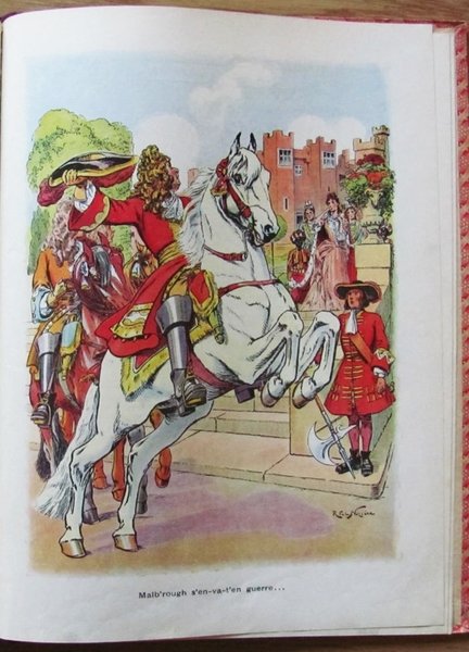 Bibliothéque de la Jeunesse et de l'Enfance - Série I. Illustrazioni in b/n in cornice a tutte le pagine e 14 splendide tavole a colori di R. de la Nézière. Librairies-Imp. Réunies (L. Martinet) - Paris, anni '30. Cartonato editoriale con dorso originale. 25x32; pp.30. In ciascuna pagina unitamente al testo della canzone c'e' un piccolo spartito. Raro e in Stato di Nuovo. , Ottimo (Fine)
