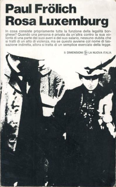 XLVI, 378 p. ; 21 x 13 cm. Dimensioni, 5. Uno dei grandi pregi di questo libro è di evidenziare la singolare esemplarità di questa grande figura di rivoluzionaria. La storia della sua vita, cioè l'insieme delle sue opere come militante e teorica, è al tempo stesso la storia dei principali sviluppi del movimento operaio succesivi alla morte di Engels. Titolo originale: «Rosa Luxemburg, Gedanke und Tat». Presentazione e traduzione di Marzio Vacatello. . Brossura editoriale, coperta illustrata con immagine in b/n in cartoncino flessibile plastificato lucido. Segni del tempo alla coperta, ai risvolti e ai tagli (fioriture e ingiallimento della carta), per il resto libro integro. Codice libreria 8981.