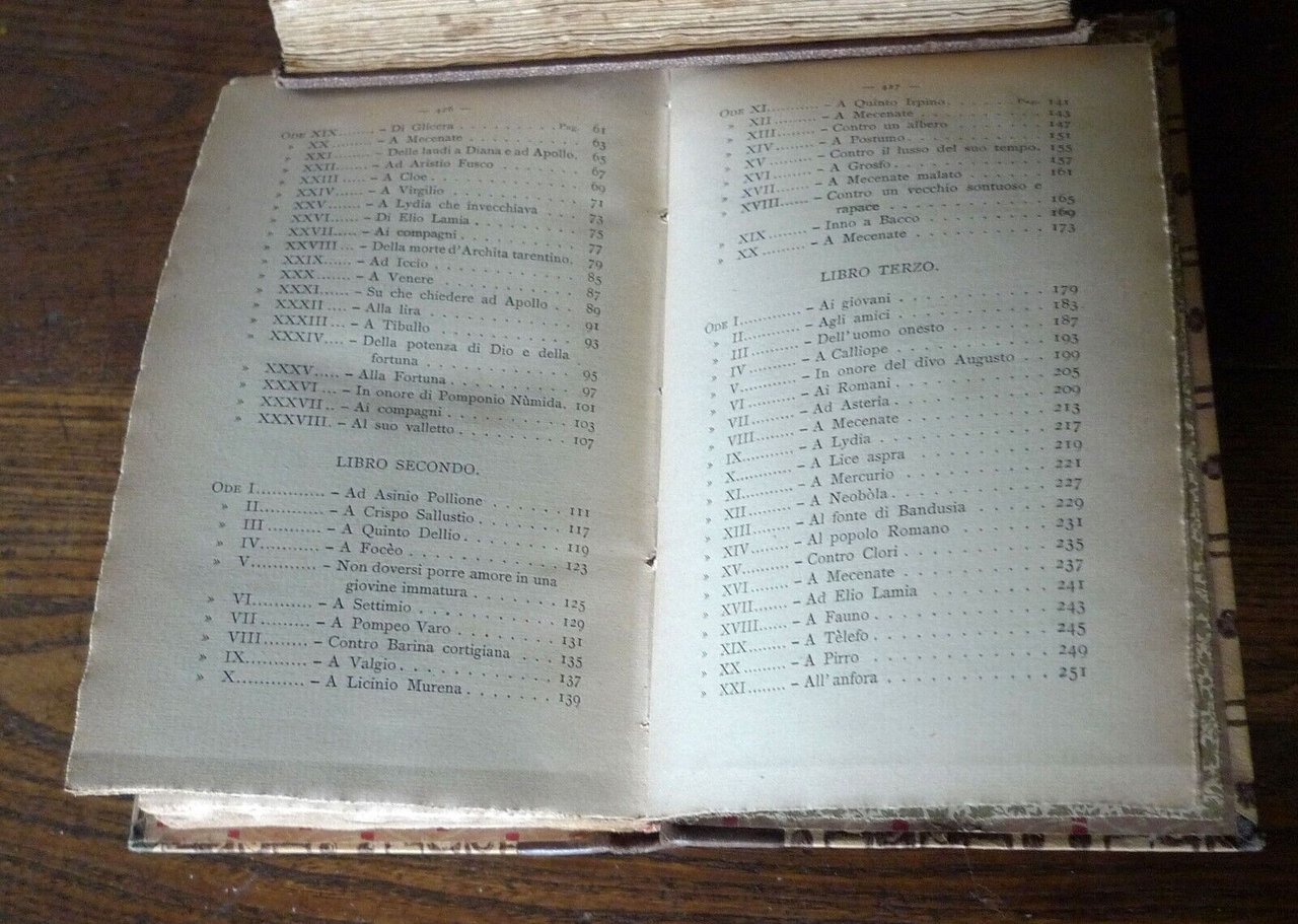 Guido Francesco Rossi,LE ODI DI Q. ORAZIO FLACCOTRADOTTE IN VERSI ITALIANI.I CINQUE LIBRI E IL CARME SECOLARE.Bologna, Nicola Zanichelli Editore, 1912,copertina rigida, rilegatura coeva in mezza pelle,conserva la brossura originale,20x13,5 cm., pp.XX-429,testo in latino con traduzione in italiano a fronte,peso: g.650