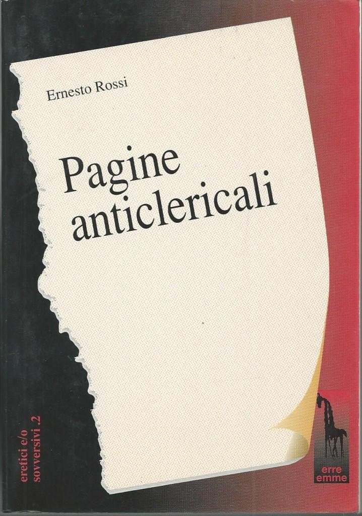 Ernesto Rossi, Pagine anticlericali, Erre emme edizioni, Pomezia 1996, prima ed., pp. 431, cm 17, br. ed. Collana Eretici e/o sovversivi, vol. 2. Leggere tracce d’uso alla brossura, per il resto perfetto.