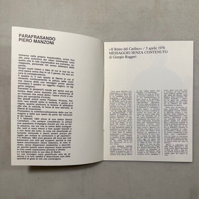 a cura di Enzo Rossi-RoissPIERO MANZONIdal 30 maggio 1978Scene Arte, Roma 1978Brossura, 16x21 cm, pp.16Con fotografie delle opere in bianco e neroPeso: 30g