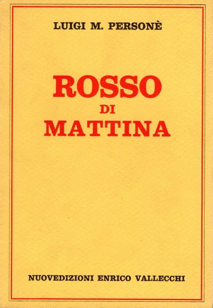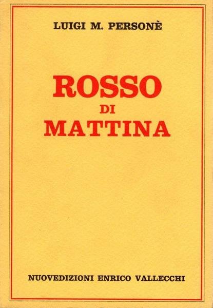 Rosso di mattina, prima edizione giugno 1982, pp. 161, formato 13,5 x 19,5.<BR>Copertina morbida di colore giallo con titoli in nero e rosso al piatto anteriore e sul dorso. In prima pagina presente dedica dell'autore alla scrittrice Minnie Alzona, datata 1984. <BR>Ottime condizioni.
