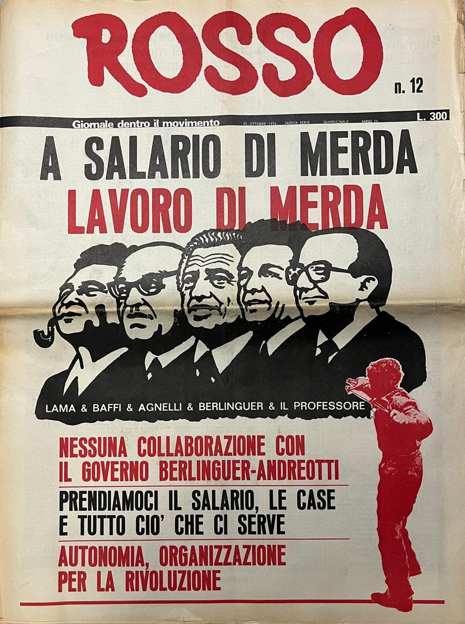 Rosso. Giornale dentro il movimento. Nuova serie Anno IV N. 12 – 25 Ottobre 1976. A SALARIO DI MERDA LAVORO DI MERDA