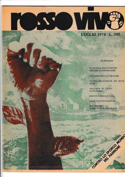 Rivista (cm 28,5x21) pag 38 con numerose foto, disegni e vignette in b/n. Raro numero della prima serie. (La nuova serie di 7 numeri fu pubblicata dal 1979 al 1986) -- La rivista interpretò la questione ambientale alla luce del pensiero marxista integrandola giustamente ai processi sociali ed economici. Stampata a Firenze ma con la redazione composta da militanti milanesi del Centro Documentazione e Informazione Scienza e Collettivo Controinformazione Scienza dell'Universita' Statale di Milano.