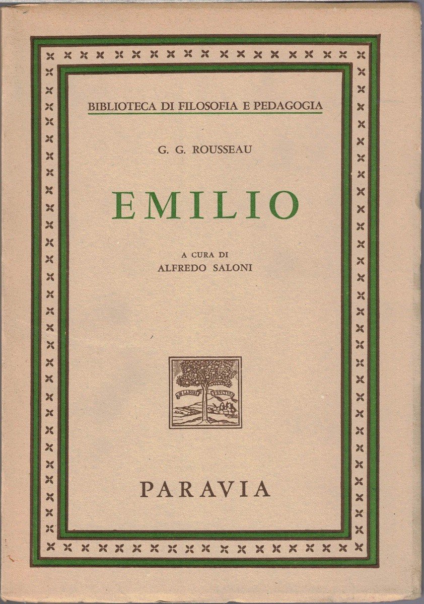 Gian Giacomo (Jean-Jacques) Rousseau, Emilio, studio introduttivo, traduzione, esposizione delle parti omesse e note di Alfredo Saloni, G. B. Paravia e C., Torino 1970, prima ed., quindicesima rist., pp. XXII, 142, cm 21, br. ed. Collana Biblioteca di Filosofia e Pedagogia. Minima brunitura della carta, per il resto perfetto.