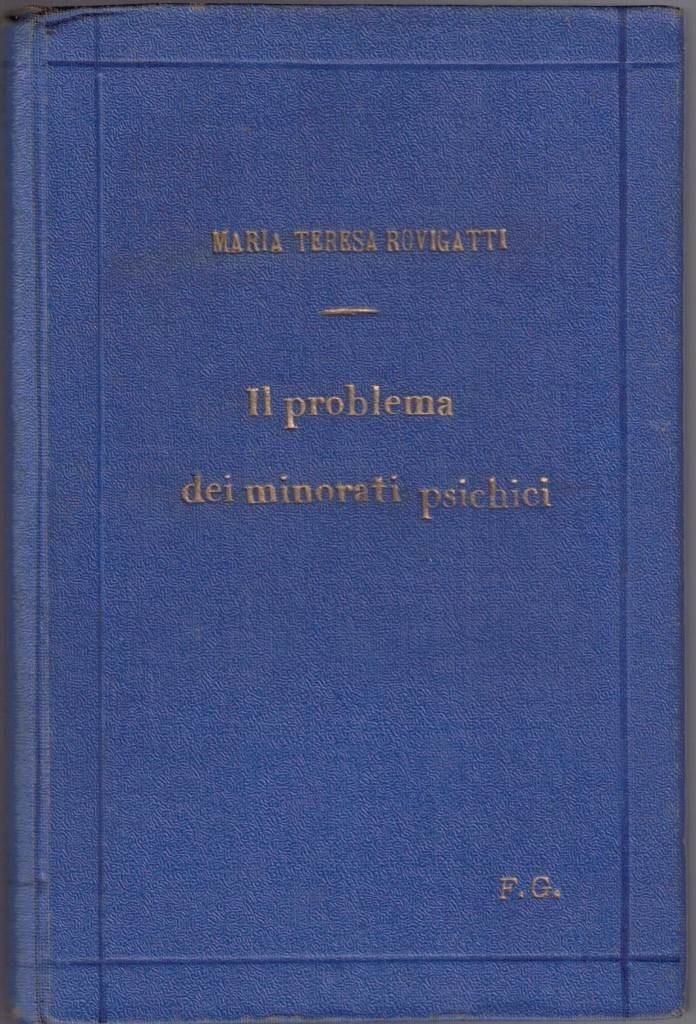 Maria Teresa Rovigatti, Il problema dei minorati psichici, Istituto Padano di Arti Grafiche, Rovigo 1950, prima ed., pp. 187, cm 19, legatura coeva in tutta tela con titoli in oro e filetti a impressione al dorso e al piatto. Collana I problemi della scuola, vol. 12. Sigla d’appartenenza alla prima carta di guardia. Alcune carte con segnetti a margine e sottolineature, leggera brunitura della carta, per il resto e nel complesso buona copia.