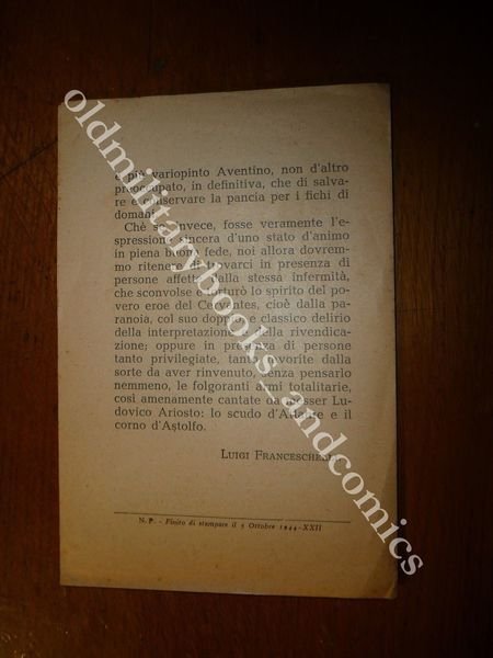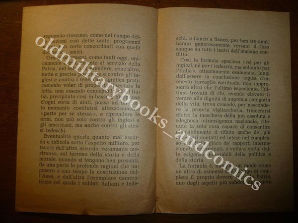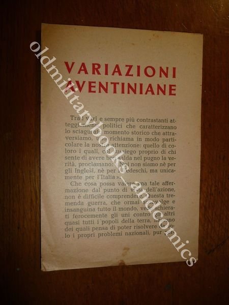 DESCRIZIONE: Foglietto di propaganda in 4 pagine formato 12x17 cm datato 5 ottobre 1944. Nell'opuscoletto si critica che non decide da parte schierarsi, fra Inglesi e Tedeschi, definendo gli indecisi Aventiniani. CONDIZIONI DELL'OGGETTO: Perfette. PESO/WEIGHT: 10 g without package