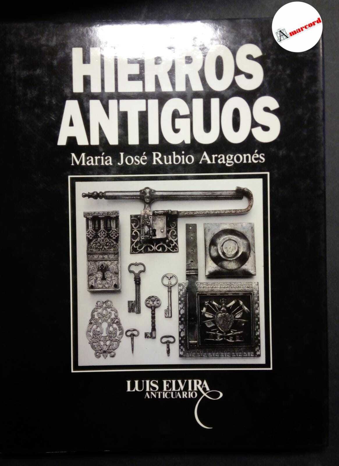 Rubio Aragones Maria Jose, Hierros antiguos, Elvira anticuario, 1989, in-4, rilegato a tutta tela con scritte argento e sovraccopertina illustrata, pp.110, illustrazioni b/n n.t. Testo in castigliano.