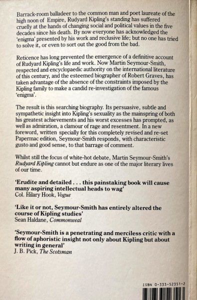 Martin Seymour-Smith has taken advantage of the lifting of constraints so long imposed by the Kipling family with the granting of extensive access to Kipling's personal papers. The author's introduction to this edition offers a response to the criticism which his biography provoked.