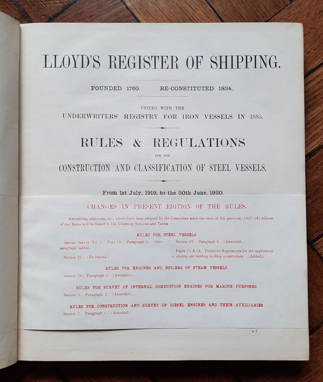 RULES AND REGULATIONS 1919-1920 LLOYDS REGISTER OF SHIPPING